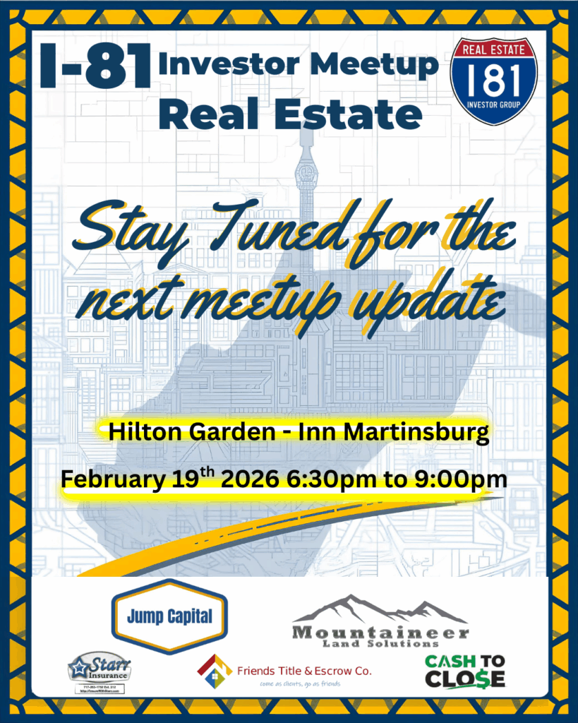 The I 81 Real Estate Investors Meetup is for any stage Investor looking to learn, share & network. Investors and Real Estate professionals can network and share deals and resources. Your Network is Your Net worth! Its the fastest growing Investor Network in the four-state area! WV, MD, PA, VA!